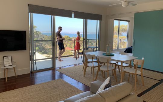 Penthouse 3 and Deluxe 2 mobility friendly apartments offer amazing views from the front bedrooms with large glass windows overlooking American River and surrounding bushland.