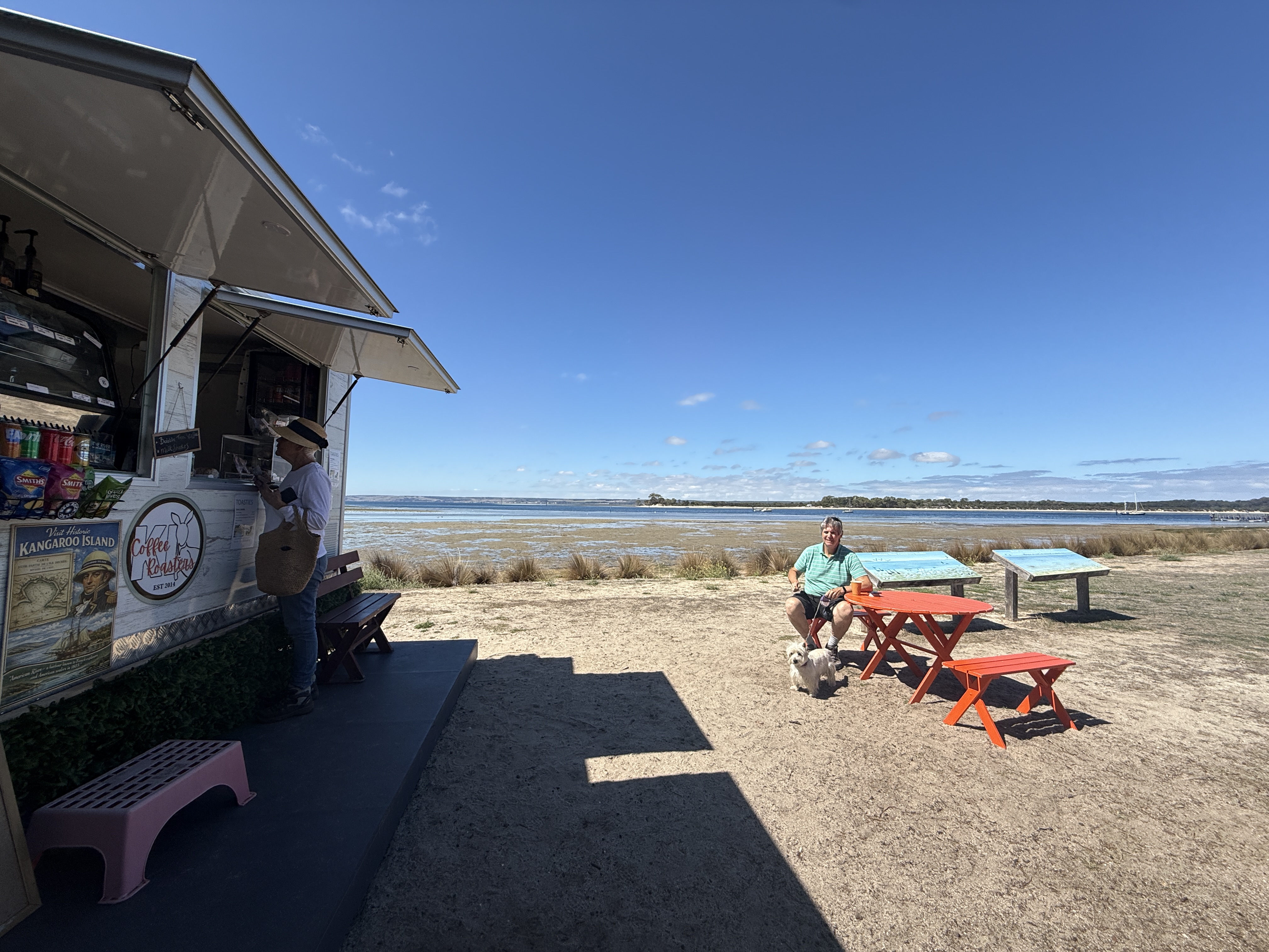Cafe Joey on the foreshore near the tennis courts Open when you see the van on site and smell the coffee aroma barista Pete is serving to the locals.